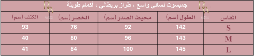 جمبسوت نسائي واسع ، طراز بريطاني ، أكمام طويلة